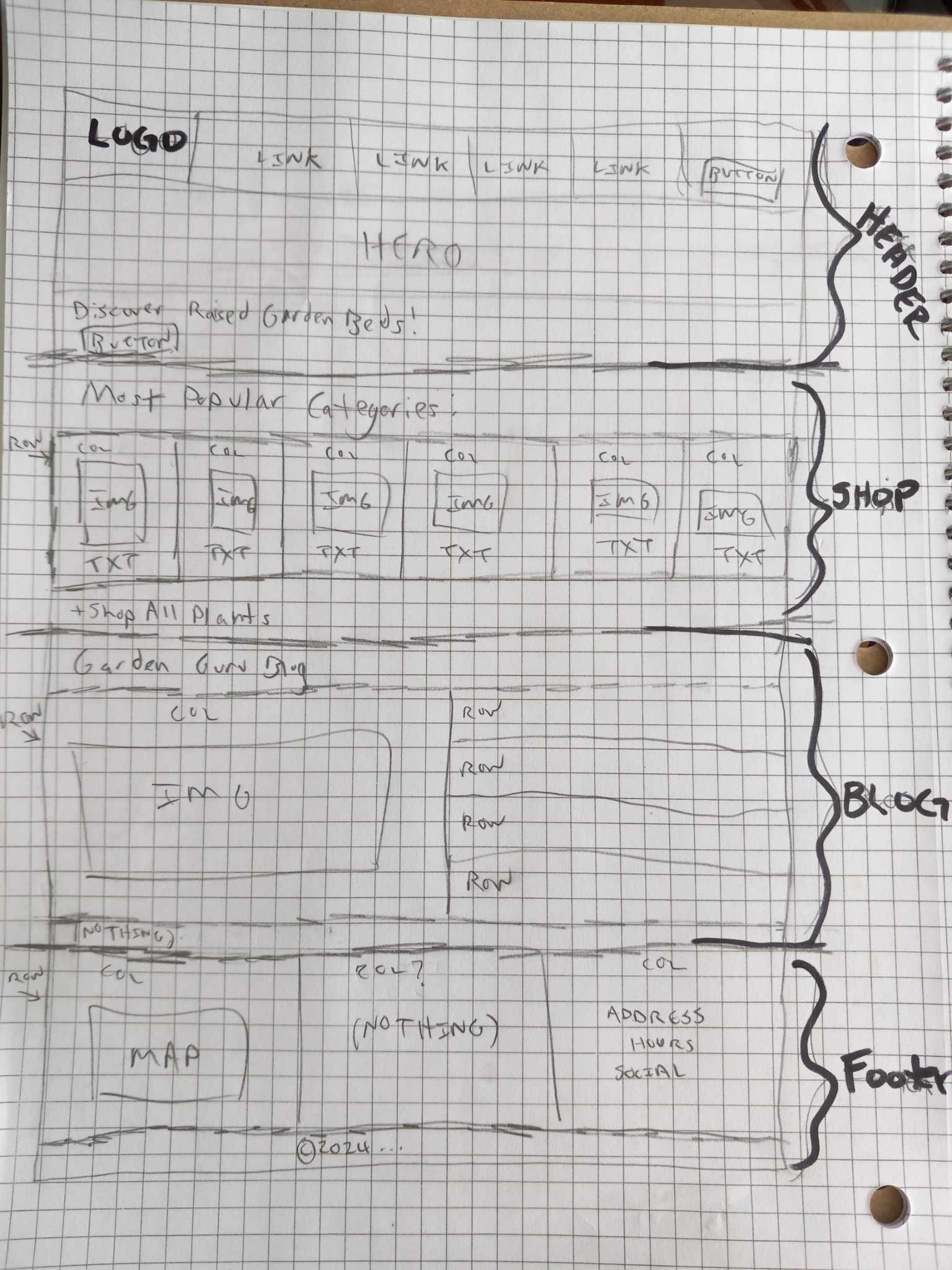 Developing the Hocott's Garden Center website has been both challenging and rewarding, emphasizing the iterative nature of web development and the importance of persevering! If I had to do this process over again, I would start earlier to get the most out of this learning experience. It's a shame that I wasted time doubting myself and procrastinating, but I'm glad I was able to finish strong and I appreciate your help getting started. I definitely feel more comfortable sketching and using Figma for wireframing, breaking down my projects into design sprints, and managing my files in a VS code environment. I am a web developer! (Just a fledgling, but man I'm flying!🐤)